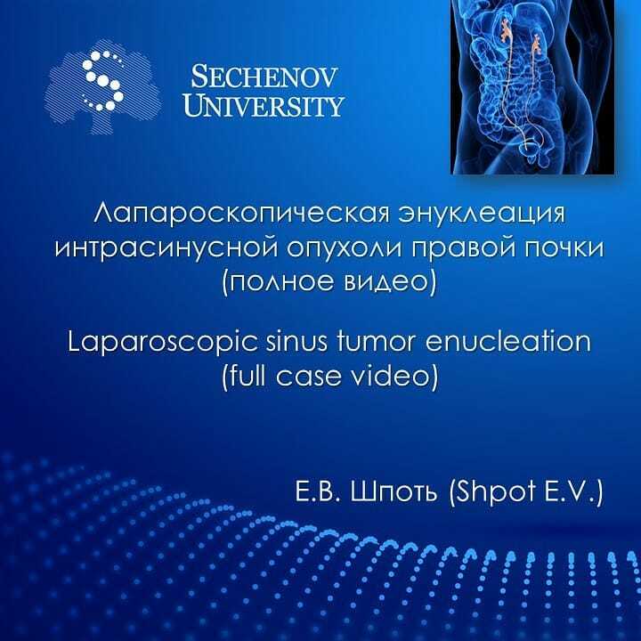 На этой неделе выполнено 7 резекций почки (3 ретроперитонеоскопических, 3 лапароскопических и одна роботическая). 6 операций выполнено в условиях нулевой ишемии, одна в условиях селективной. Все операции, кроме роботической, выполнены без использования ассистенского инструмента. Наиболее интересное наблюдение - интрасинусная опухоль правой почки. Выполнена лапароскопическая энулеация образования. Из особенностей операции: - нулевая ишемия - работа без ассистентского троакара - интрапаренхиматозное клипирование сосудов, питающих опухоль -без ушивания раны почки.